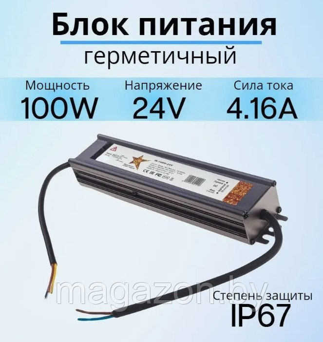 Герметичный блок питания 24В 100Вт предназначен для энергоснабжения светодиодных систем, обладает высокой эффективностью и защищенностью.