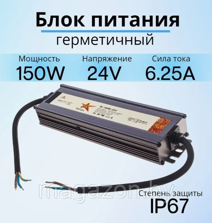 Герметичный блок питания 24В 150Вт предназначен для энергоснабжения светодиодных систем, обладает высокой эффективностью и защищенностью.