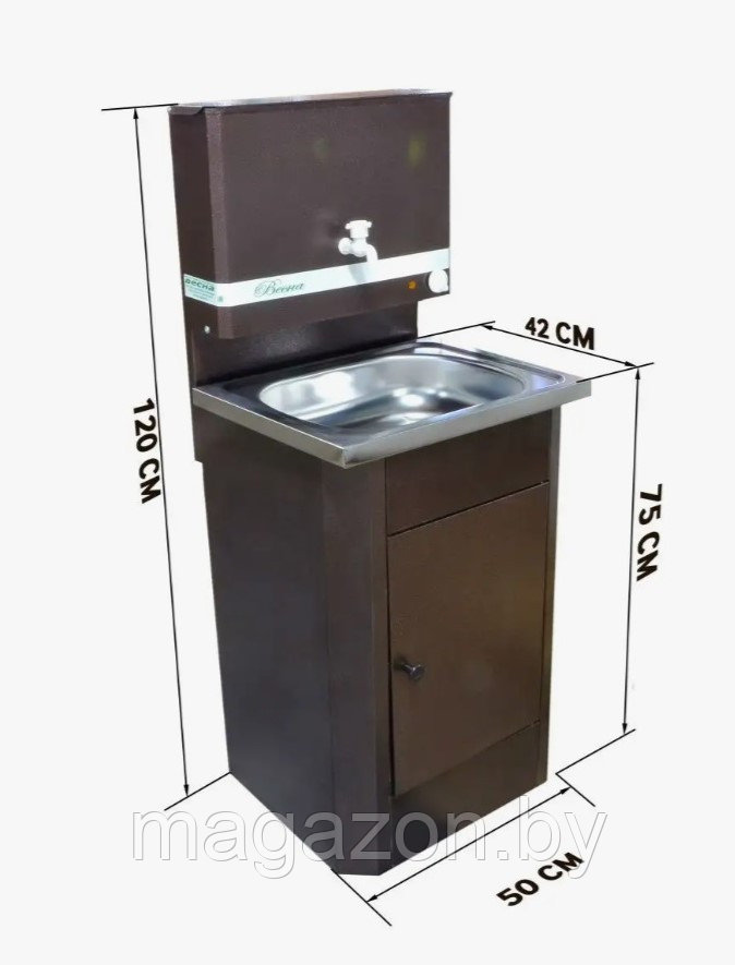 Дачный умывальник Весна с подогревом воды и нержавеющей мойкой, цвет тумбы медь.